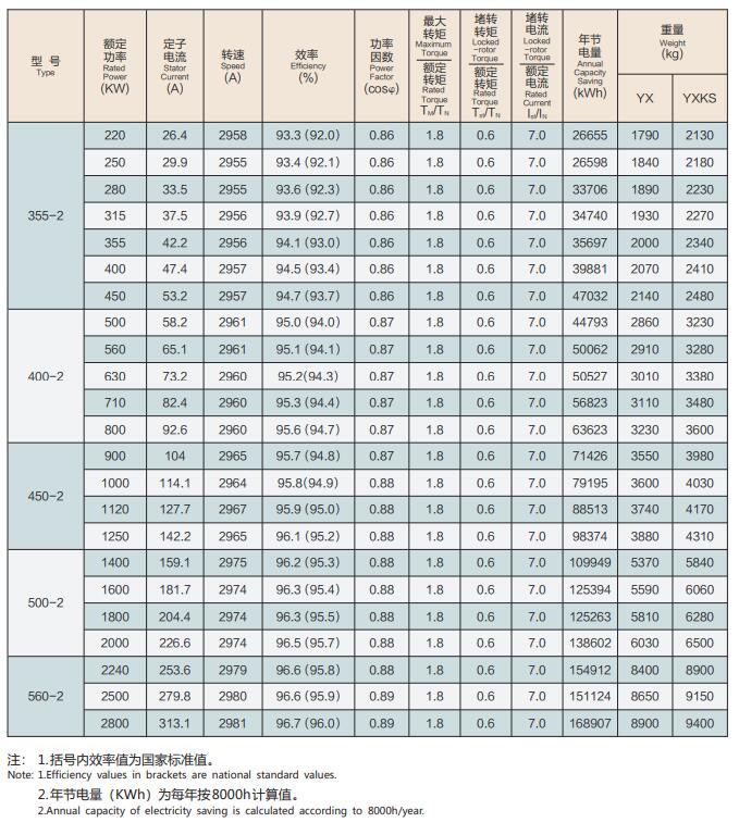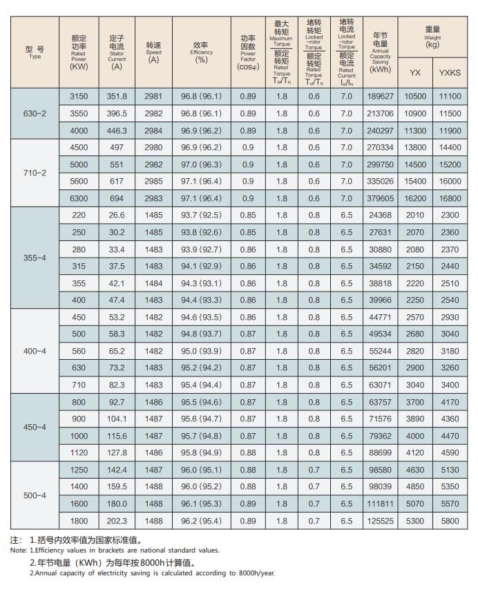 YX系列6kv高效高壓三相異步電機(jī)技術(shù)參數(shù):